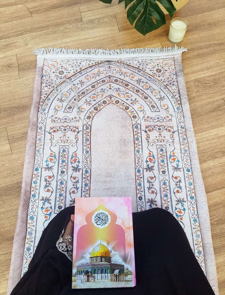 تصميم مستوحى من الطبيعة، تقدم لك السجادة تجربة صلاة مميزة بلمسة عصرية تضفي على لحظاتك الروحانية أجواءً من الجمال والراحة